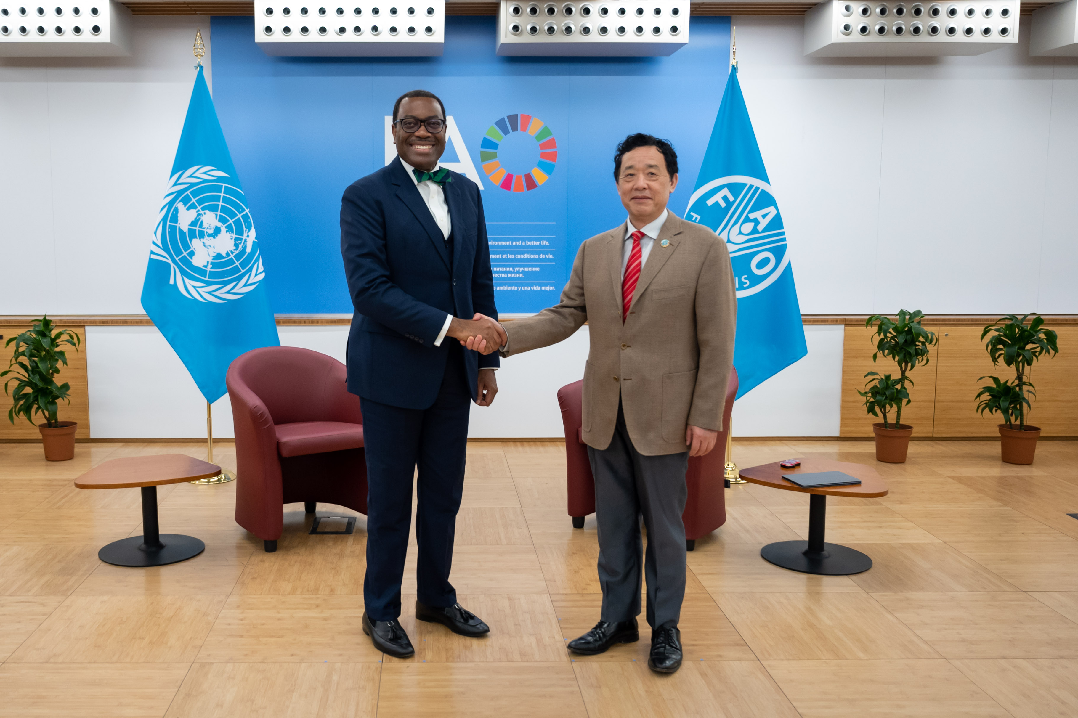 - African Development Bank Group president Akinwumi Adesina (left) and Food and Agriculture Organization (FAO) Director General Qu Dongyu