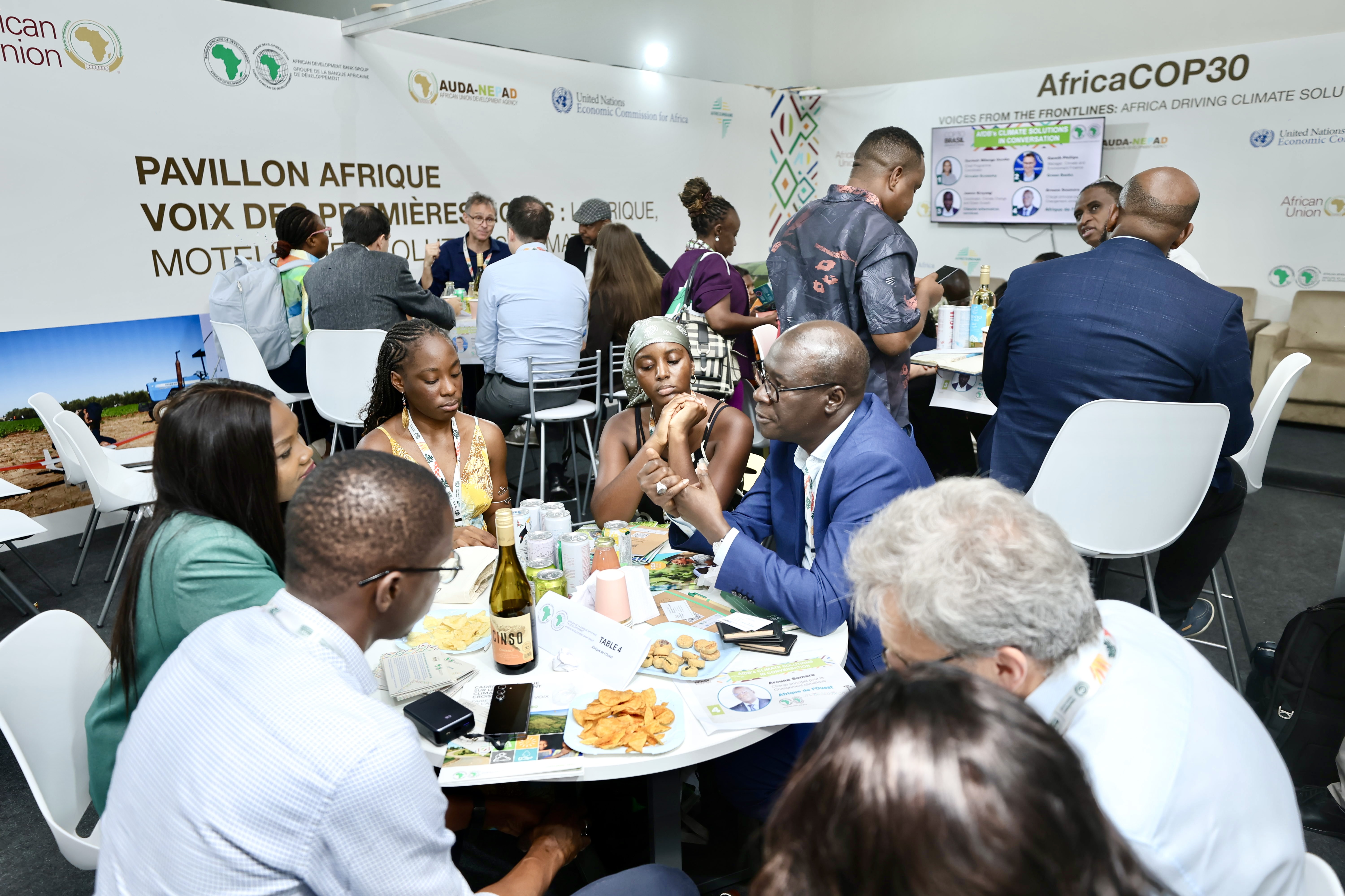 خلال الدورة الثلاثين لمؤتمر الأطراف (COP 30) الذي عُقد في بليم (10-21 نوفمبر)، ابتكرت مجموعة البنك الأفريقي للتنمية فكرةً جديدةً لعرض حلولها المناخية المتنوعة: فبدلاً من الجلسات المتوازية المعتادة التي تضم متحدثين من جهة وجمهوراً من جهة أخرى، نظّمت المجموعة حواراً تفاعلياً مع المشاركين خلال جلسة استراحة، مما أتاح مناقشات مباشرة وغير رسمية حول حلولها المناخية. وتركزت المناقشات على تسريع التنمية المستدامة والقادرة على الصمود في وجه تغير المناخ في أفريقيا.