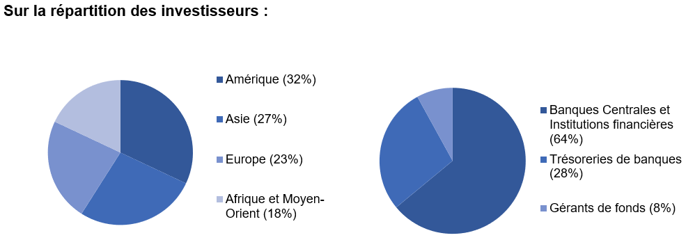 La qualité exceptionnelle du carnet d’ordres s’illustre par la forte participation des banques centrales et institutions officielles