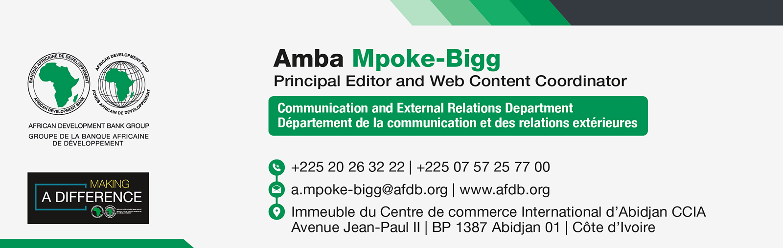 إدارة الاتصال والعلاقات الخارجية، بالبنك الإفريقي للتنمية