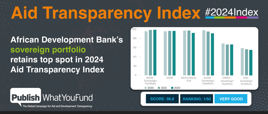 Une fois de plus, Publish What You Fund (http://apo-opa.co/4d30JJw) (« Publiez ce que vous financez »), la campagne mondiale pour la transparence de l’aide et du développement, estime que le portefeuille souverain de la Banque africaine de développement (www.AfDB.org/fr/) est le plus transparent de tous. Ce portefeuille est en tête parmi 50 institutions de développement mondiales, avec une note inégalée de 98,8 selon l’Indice de transparence de l’aide 2024 publié ce jour.