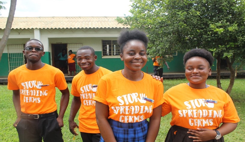 - Zambian school girls carry the message of sanitation on their t-shirts