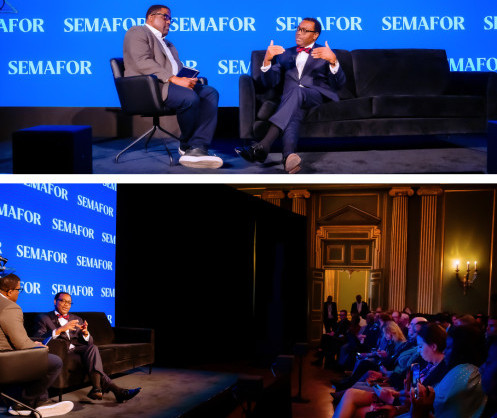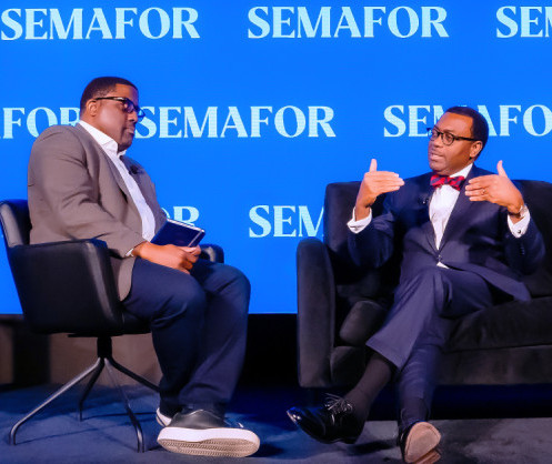 • Dr Akinwumi Adesina (right) warns of the impact of non-transparent resource-backed loans on Africa's debt burden. Semafor Summit, Washington DC April 2024 (3)