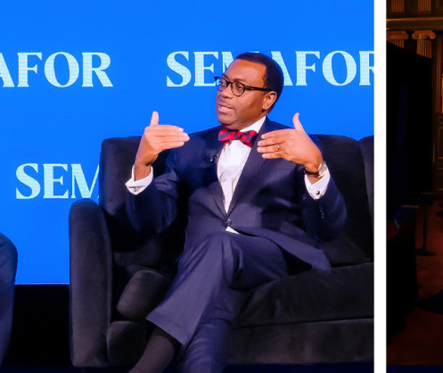• Dr Akinwumi Adesina (right) warns of the impact of non-transparent resource-backed loans on Africa's debt burden. Semafor Summit, Washington DC April 2024 (2)