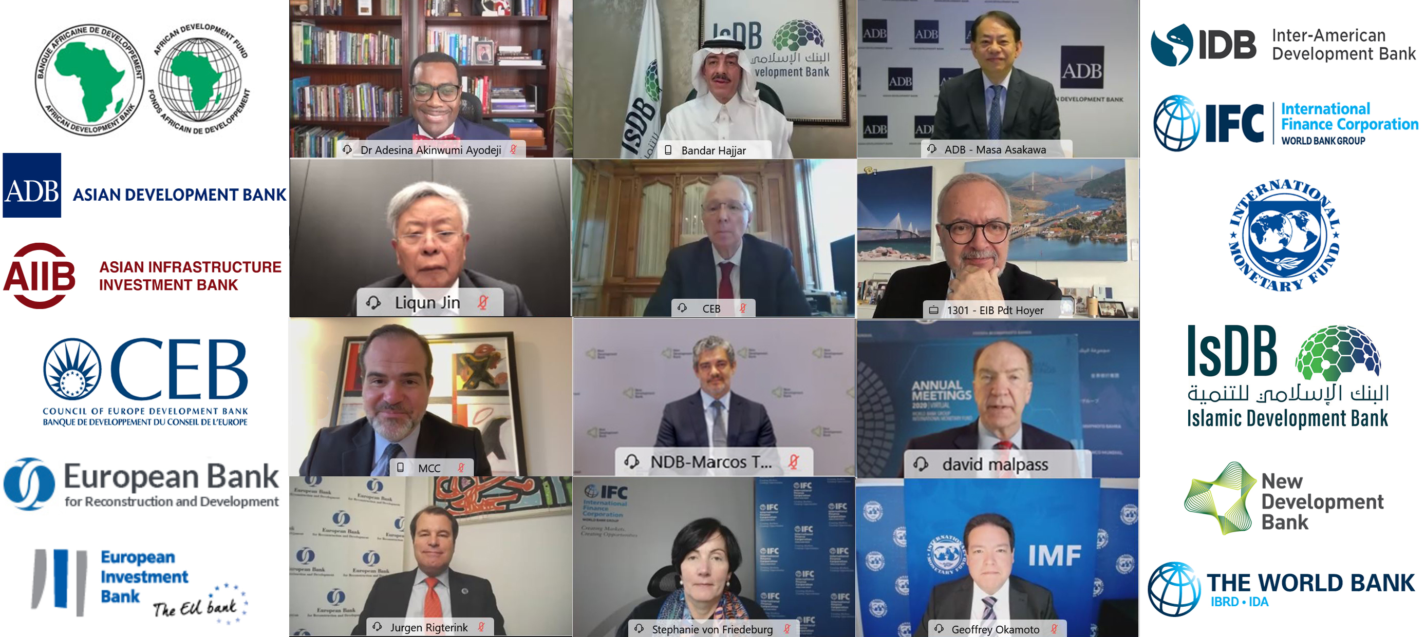 MDBs represented at the meeting include the Islamic Development Bank (IsDB), Asian Development Bank (ADB), Asian Infrastructure Investment Bank (AIIB), Council of Europe Development Bank (CEB), the European Bank for Reconstruction and Development (EBRD) and the European Investment Bank (EIB), the Inter-American Development Bank (IDB), International Finance Corporation (IFC), International Monetary Fund (IMF), the New Development Bank (NDB), World Bank Group and the African Development Bank.