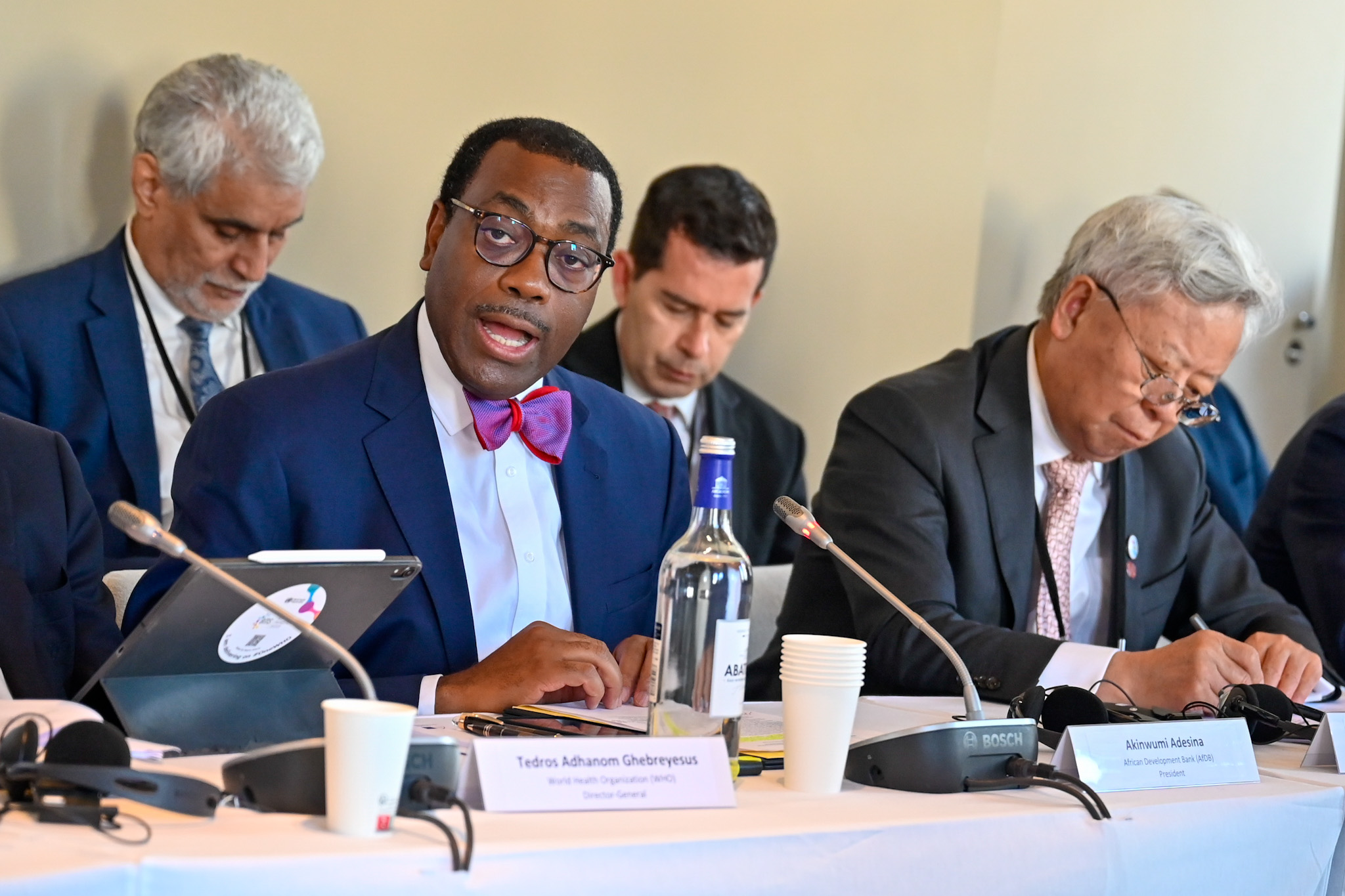 AfDB head Dr. Akinwumi A. Adesina with WHO Director General Dr. Adhanom Ghebreyesus Tedros and heads of other multilateral development banks at the launch of the Platfom in Paris on June 23, 2023 (2)