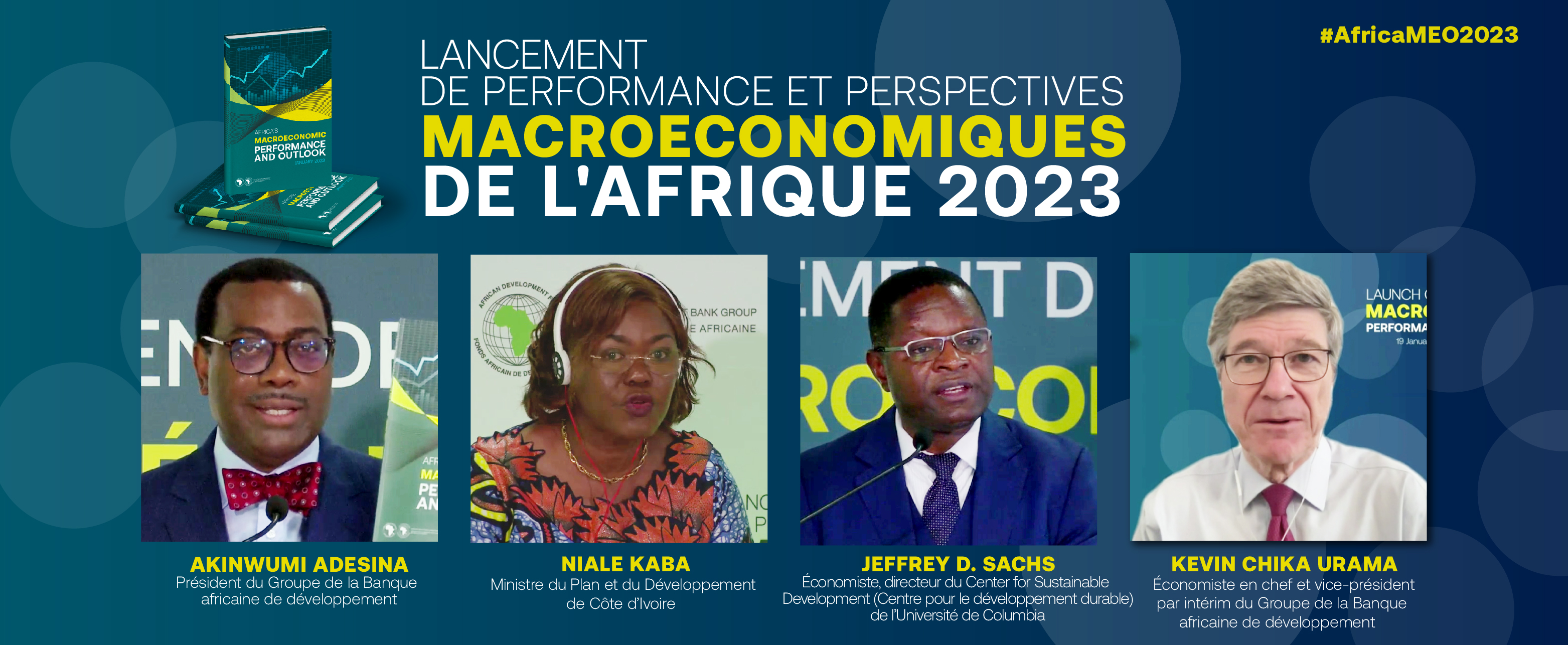 L-R: AfDB President Dr. Akinwumi Adesina, Niale Kaba, Minister of Planning and Development of Côte d'Ivoire, and Prof. Kevin Urama, Acting Chief Economist and Vice President at AfDB, at the Abidjan launch of the 2023 Africa's Macroeconomic Performance and Outlook