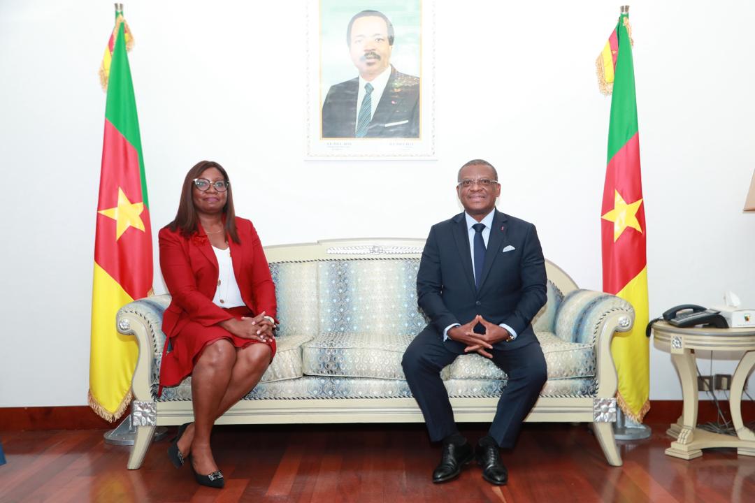 Marie-Laure Akin-Olugbade, the African Development Bank’s Vice-President for the Regional Development, Integration and Business Delivery Complex, meets with Joseph Dion Ngute, Prime Minister of Cameroon