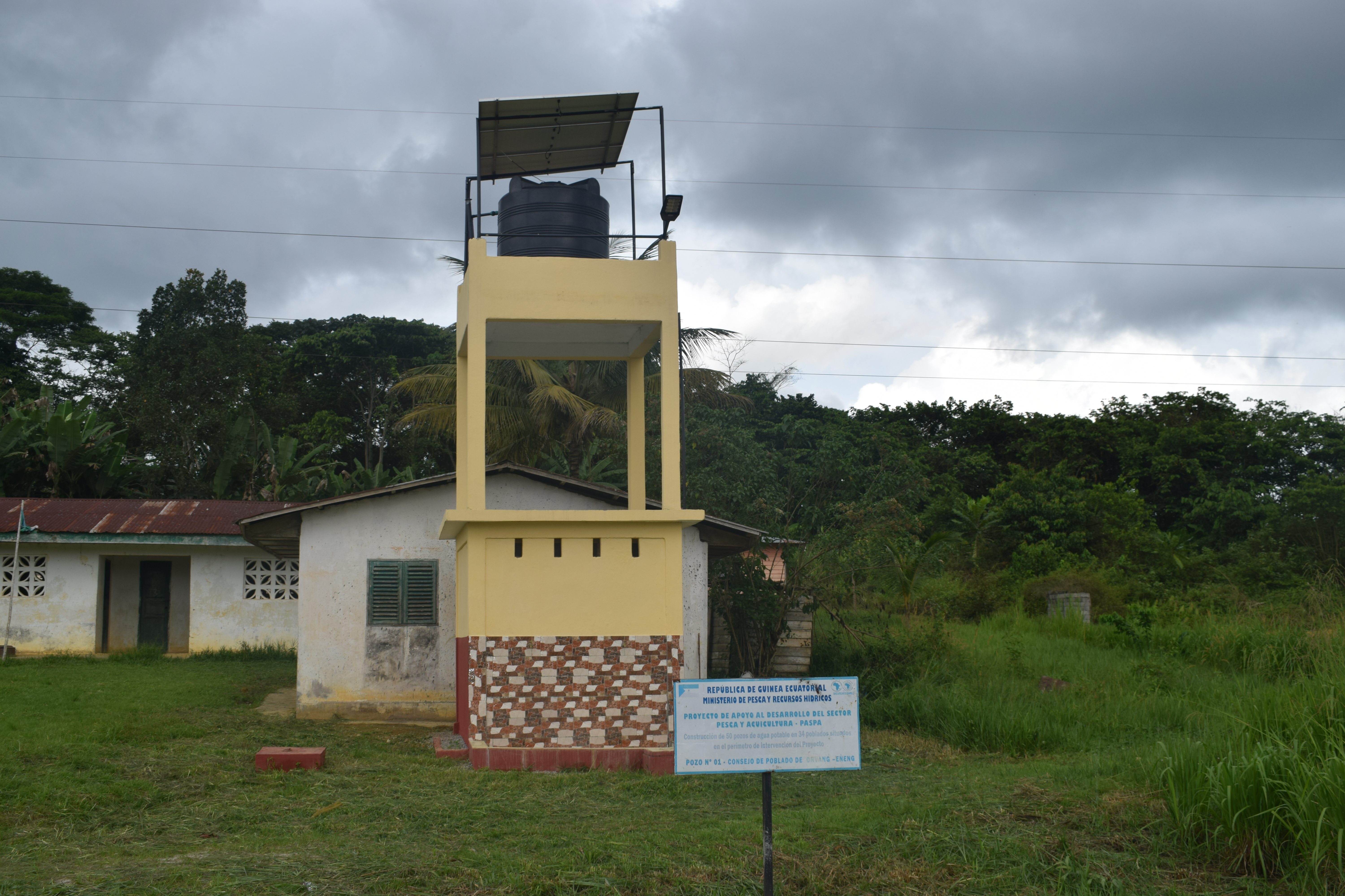 أحد آبار مياه الشرب الـ 51 التي تم بناؤها كجزء من مشروع PASPA، في قرية ميكوغا، غينيا الاستوائية
