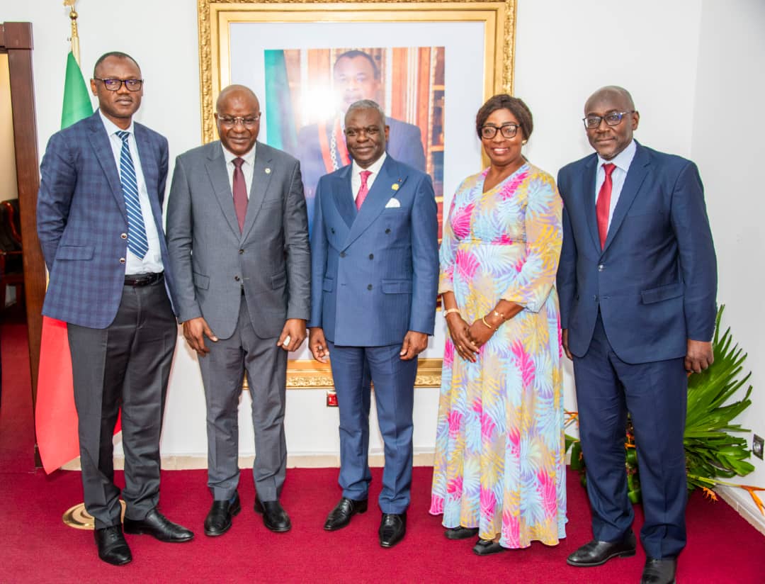 Group photo following the meeting with the Prime Minister. Left to right: Olivier Beguy, African Development Bank resident country economist; Solomane Koné, the Bank Group’s acting Director General; Anatole Collinet Makosso, Prime Minister; and Célestine Mengue, agricultural projects officer at the African Development Bank
