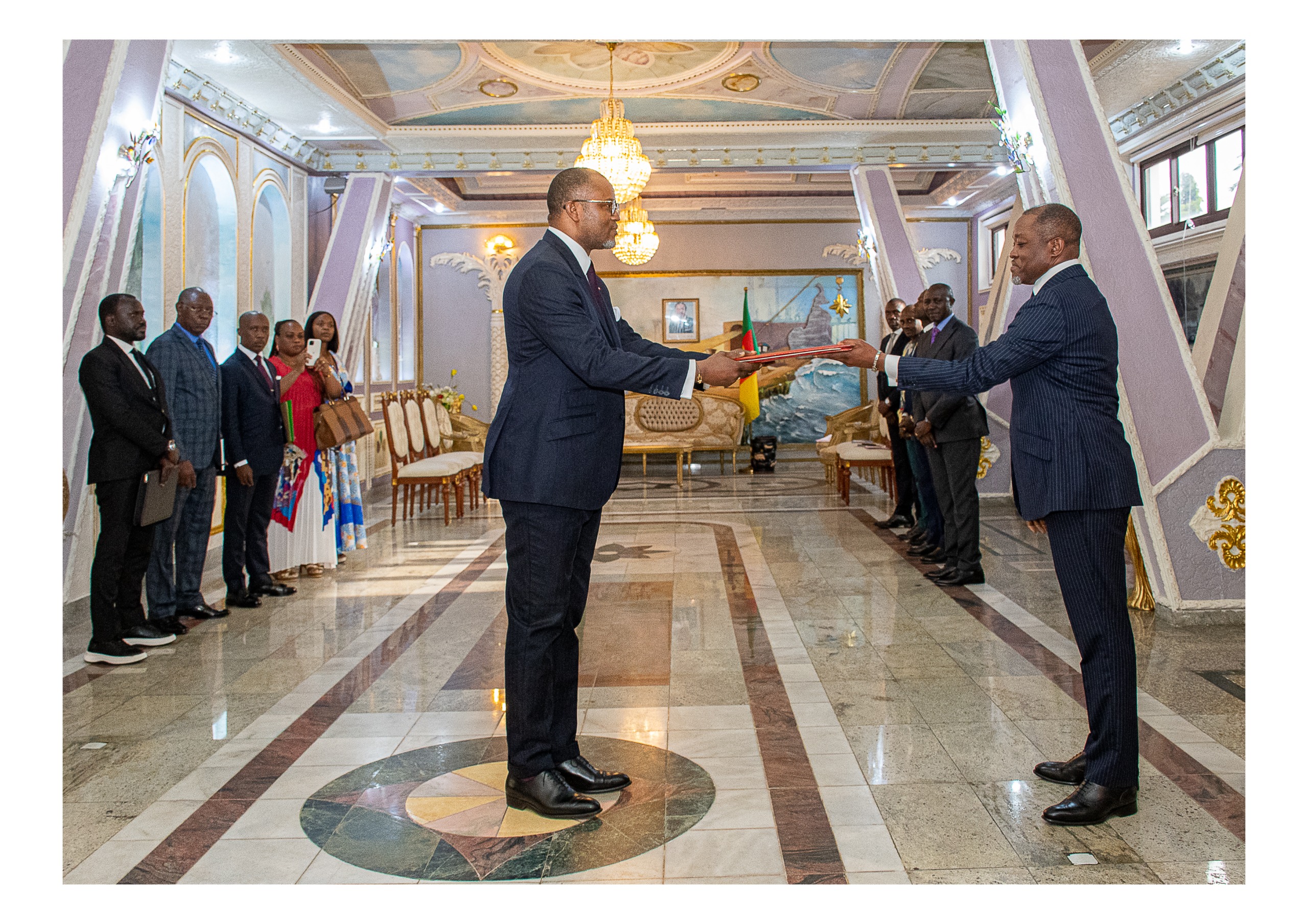 Léandre Bassolé, Director General of the Regional Office for Development, Integration, and Business Delivery for Central Africa, presents his letters of introduction to Oumarou Chinmoun, Secretary General of the Cameroonian Ministry of Foreign Affairs, representing Minister Lejeune Mbella Mbella, on 27 August 2025 in Yaoundé (Source: African Development Bank Group (AfDB) | 4 months ago)