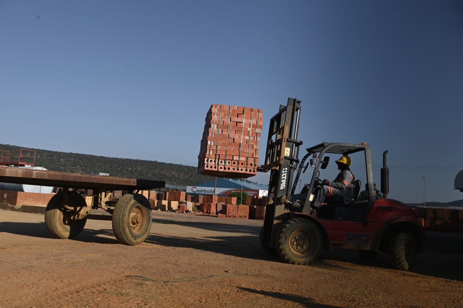 A forklift operator at Lobatse Clay Works loads bricks into trucks for distribution into the local market and export
