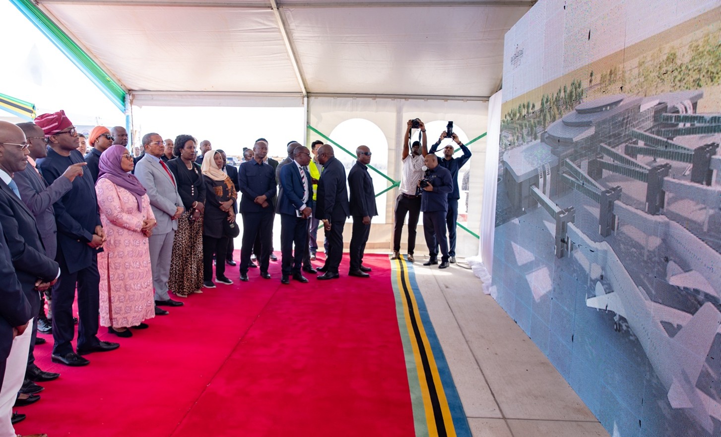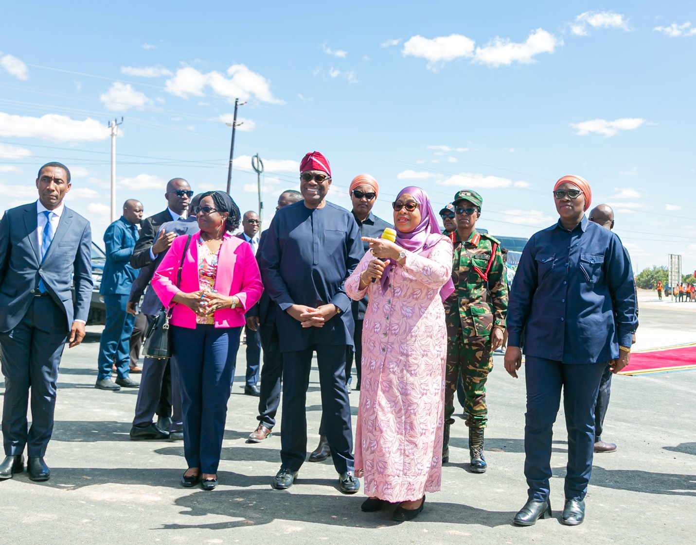 President Samia Suluhu Hassan and Bank Group President Adesina assess construction progress of the Msalato International Airport