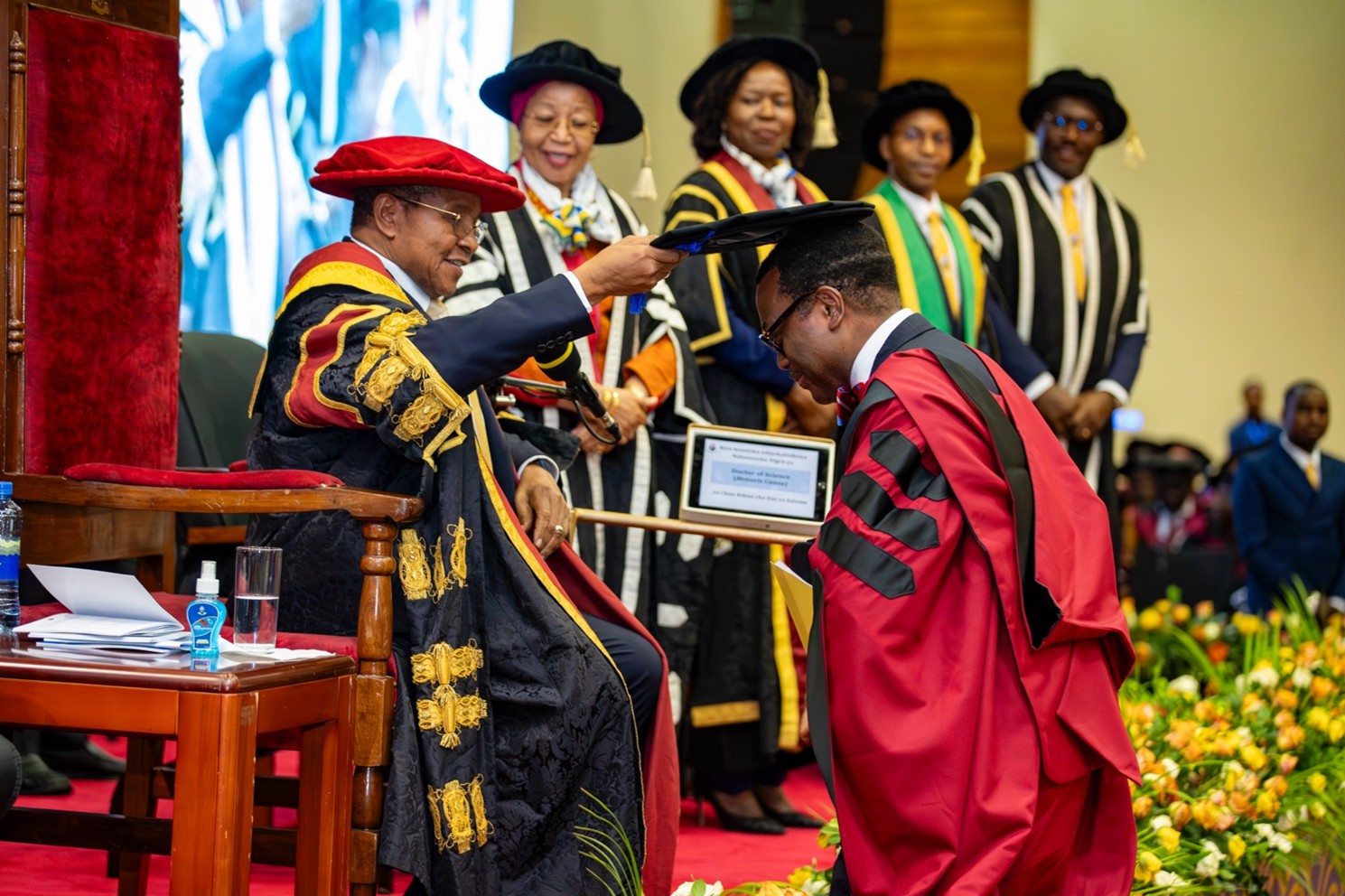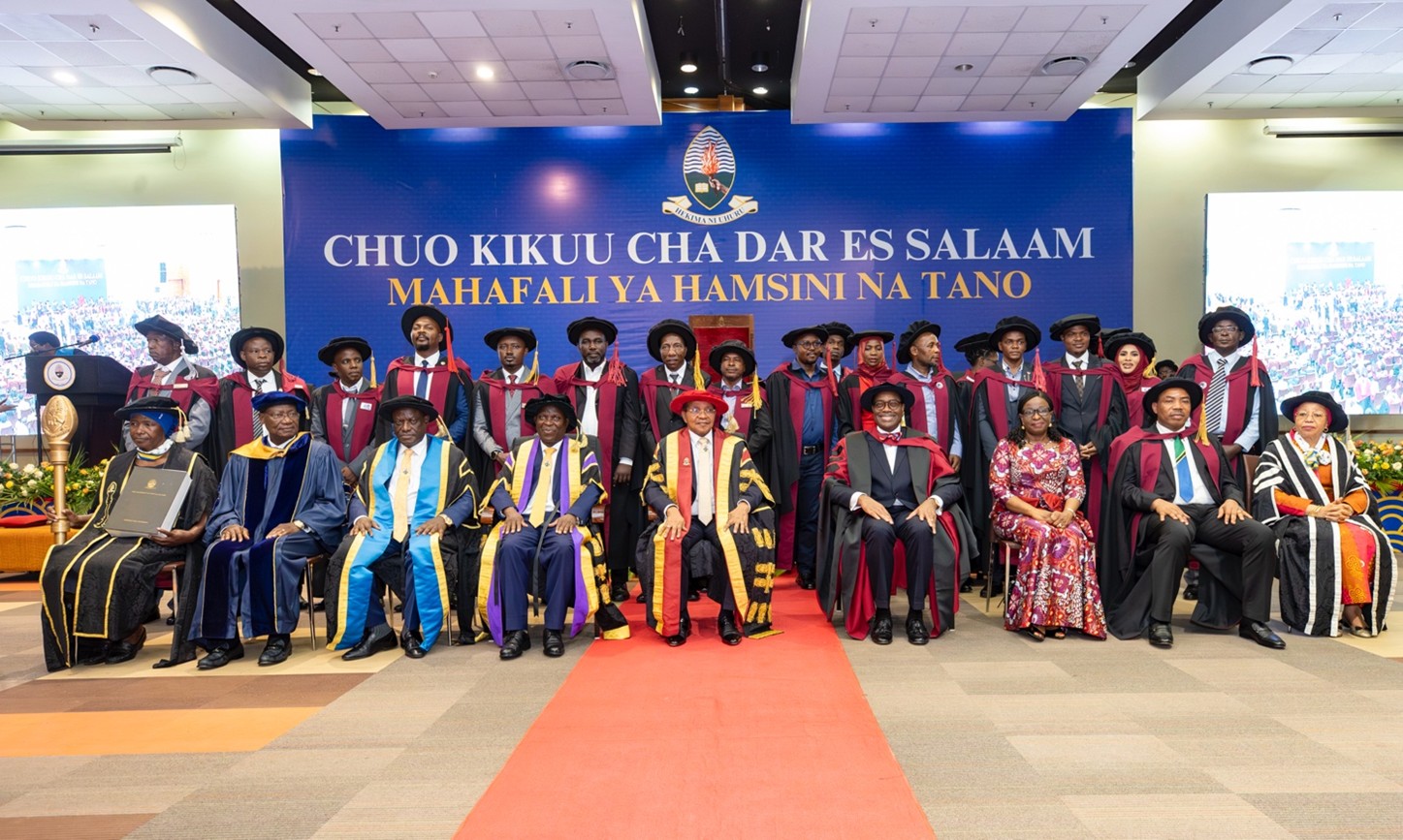 Dr Adesina with the Class of 2025 University Dar es Salaam doctoral graduates, after being awarded a Doctor of Science Honorary Degree