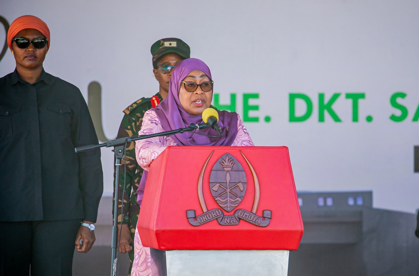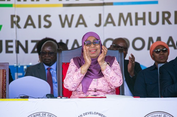 Mama Samia and the crowd laugh and cheer as Adesina speaks Kiswahili during the Dodoma Ring Road commissioning ceremony (1)
