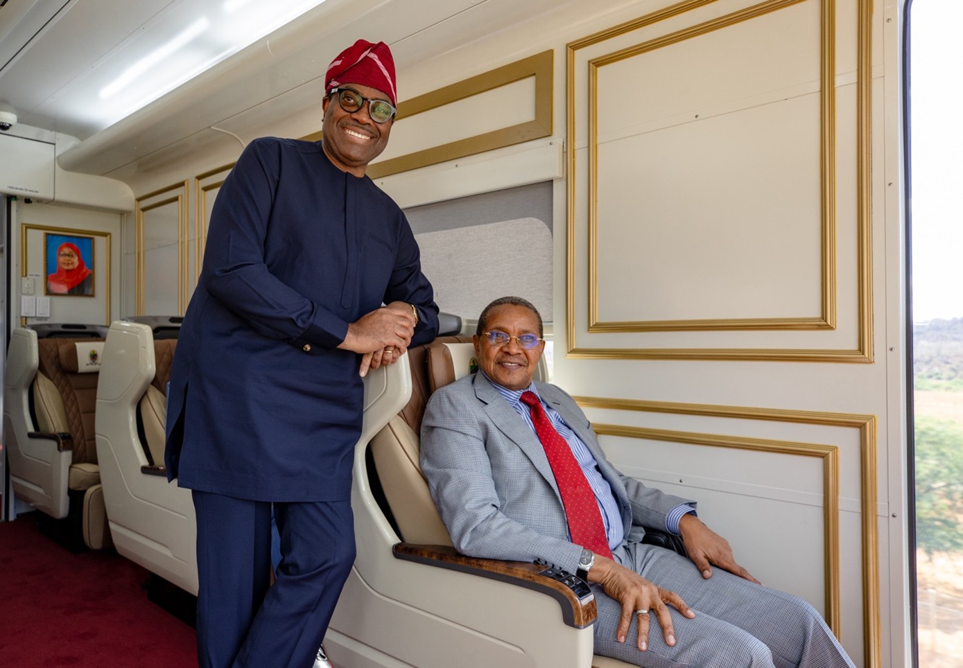 Adesina and Former President of Tanzania, Jakaya Kikwete, enjoy a 3-hour ride from Dar es Salaam to Dodoma on the Standard Gauge Railway (Source: African Development Bank Group (AfDB) | 6 months ago)