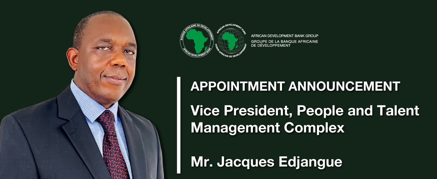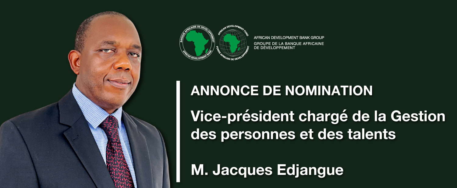 - La Banque africaine de développement nomme Jacques Edjangue vice-président chargé de la Gestion des personnes et des talents (PT)